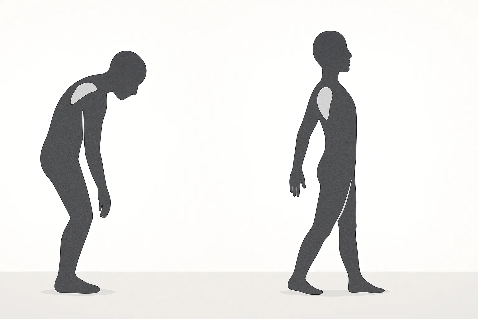 この動きが少なくなると、首や肩の筋肉が代わりに頑張り続け、こりや痛みが出やすくなります。いわゆる猫背・巻き肩・スマホ首(ストレートネック)も、肩甲骨の動きの悪さと関係が深い状態です。