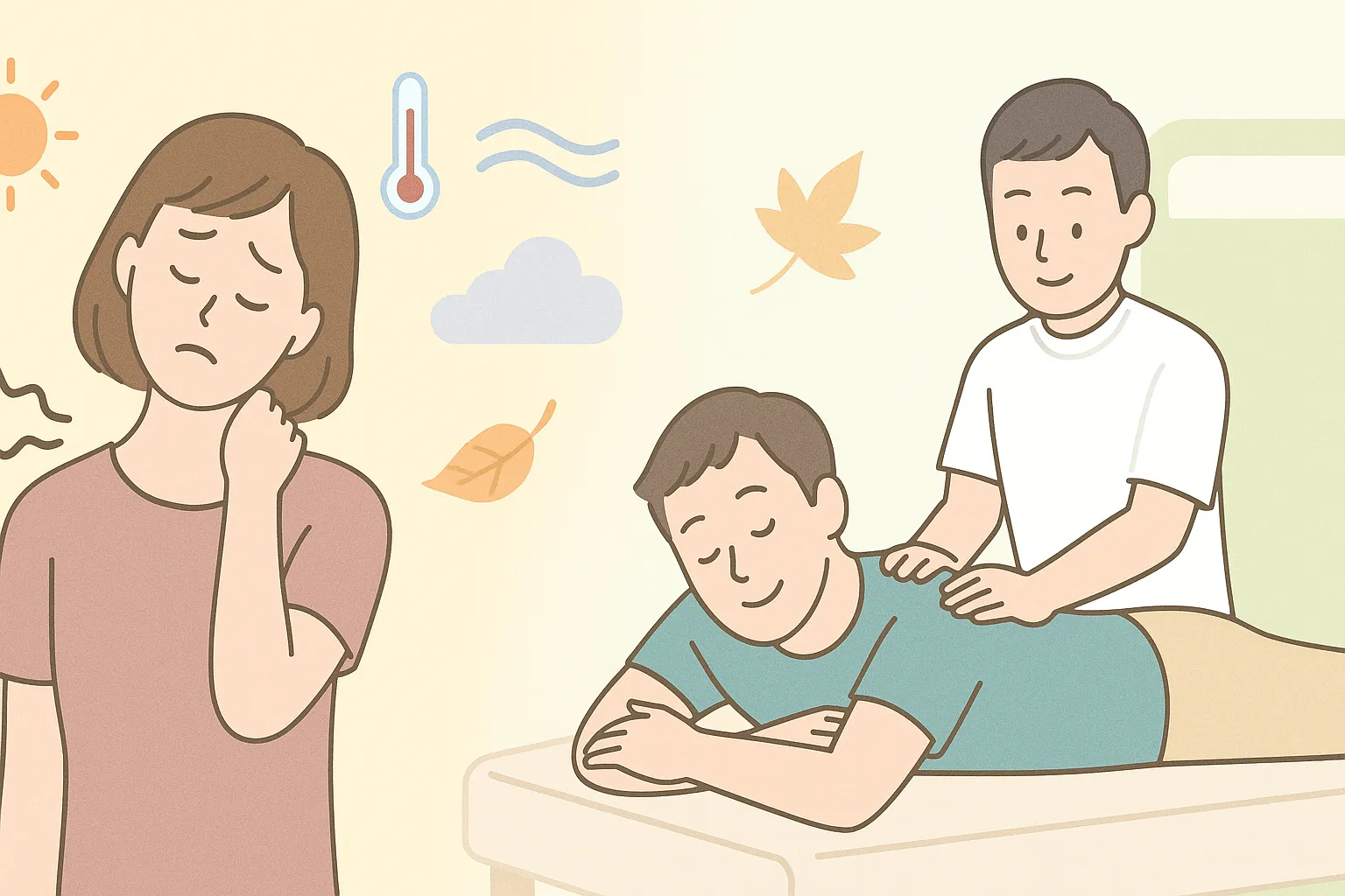 季節の変わり目は、体が環境に合わせて調整し続けるため、首こり・肩こり・頭痛・めまい・だるさなどの不調が出やすくなります。ここでは原因と対策、整骨院でできるケアを分かりやすくまとめます。